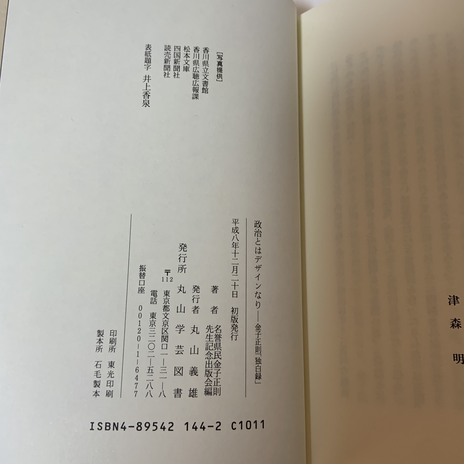 政治とはデザインなり 金子正則独白録 名誉県民金子正則先生記念出版会 丸山学芸図書 平成8年