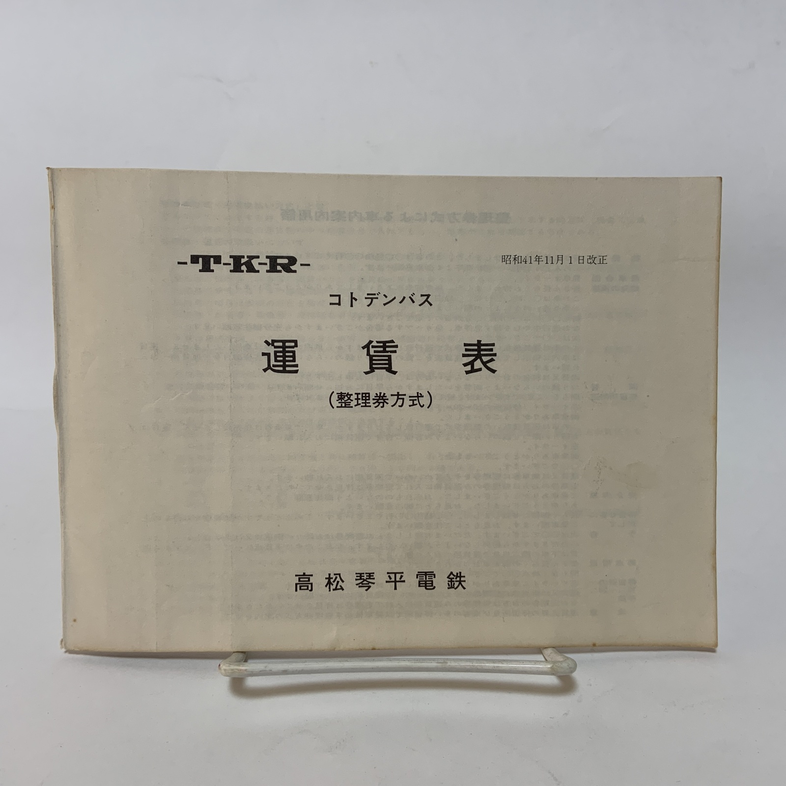 タイトル コトデンバス 運賃表 (整理券方式) 昭和41年11月1日改正