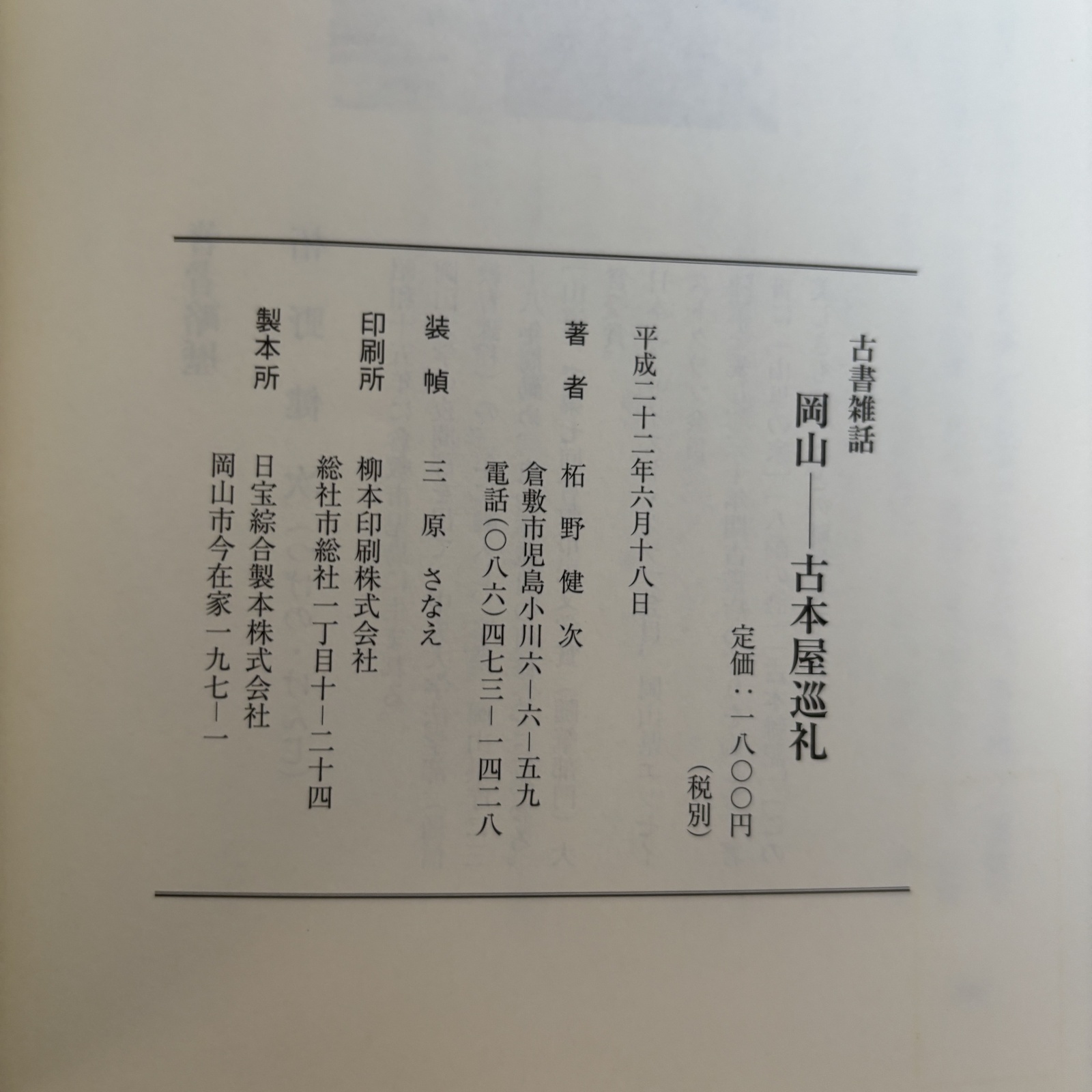 古書雑話 岡山 古本屋巡礼 柘野健次 平成22年 岡山県