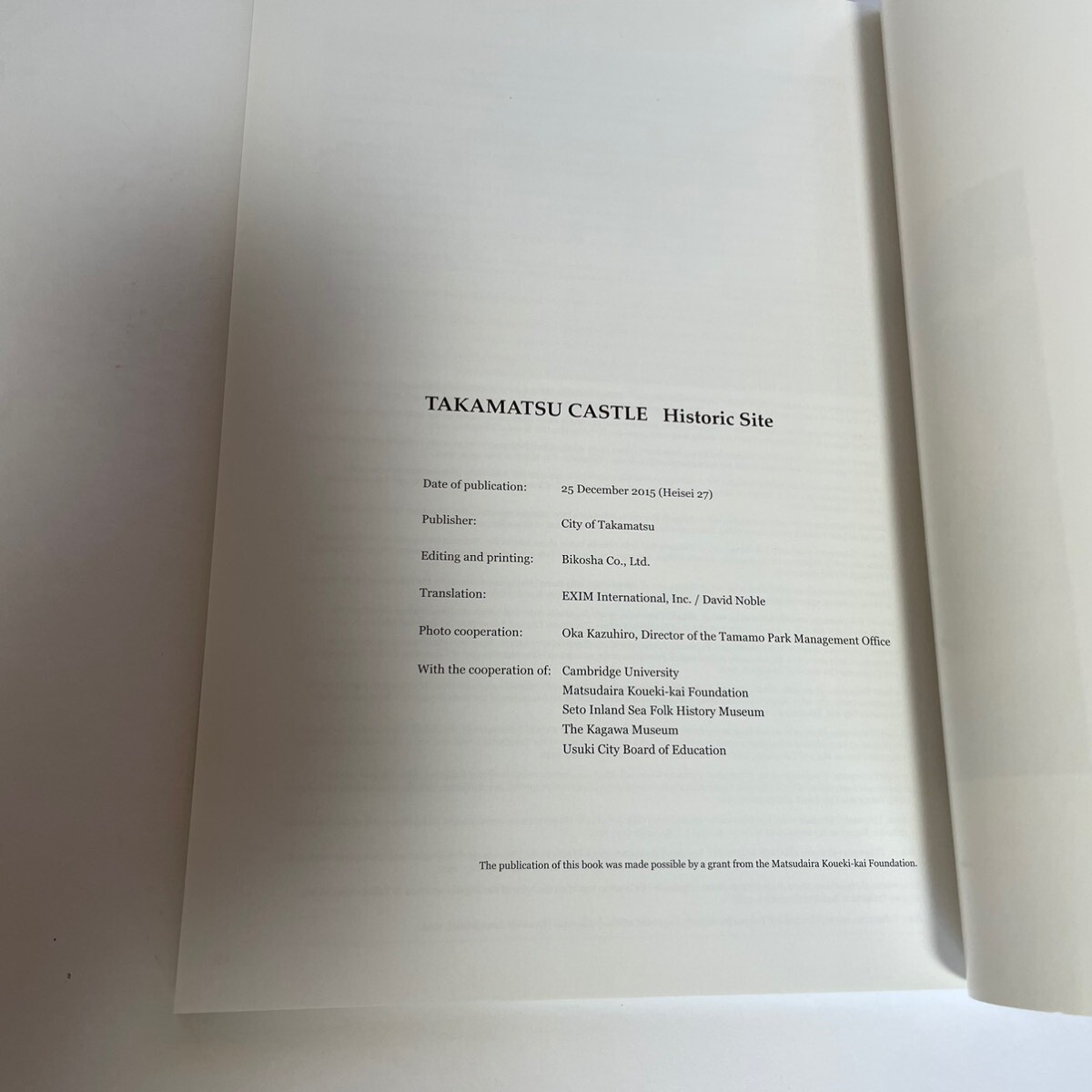 タイトル TAKAMATSU CASTLE HISTORIC SITE 高松城の歴史 英語版 2015年