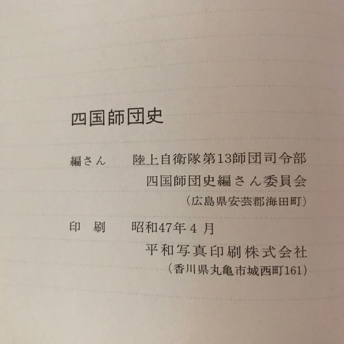 四国師団史 第十三師団司令部 昭和47年 四国土師団史編さん委員会